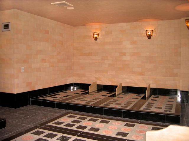床や壁面に陶材を使った部屋で横たわることで、陶材から発せられる遠赤外線と善玉酵素の「テラヘルツ波」で体が芯から温まります。