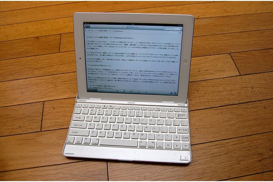 続いて私が手を出したのがコレ。iPadと書かれてはいますが、もちろんiPhoneでも使うことはできます。このアイテムの特徴は、キーボードにiPadをドッキングさせることができる、ということ。キーボードの溝にiPadを立てると、さながMacBook Airという感じ。うお~、かっちょいいぞ! さらに、キーボードにiPadをはめ込んで、コンパクトに2つを持ち運ぶこともできます。これは実用性高し!
