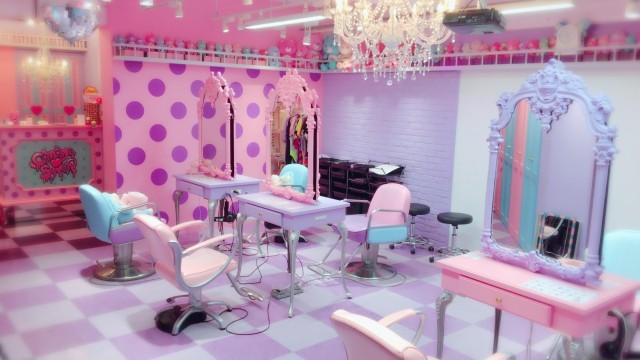 「お店のコンセプトは決まってはないんですけど、かわいいものが好きなので、かわいくありたいというのと、お店のイメージカラーは、ピンクと水色とパープル。そのテーマにあったお部屋になっています」(美容師・IKUさん)