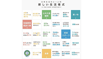新しい生活様式として、「買い物は計画を立ててすばやく」「飲食は持ち帰りやデリバリーも」「娯楽・スポーツは予約制を利用してゆったりと」など、「計画性」を重視する項目が挙げられている