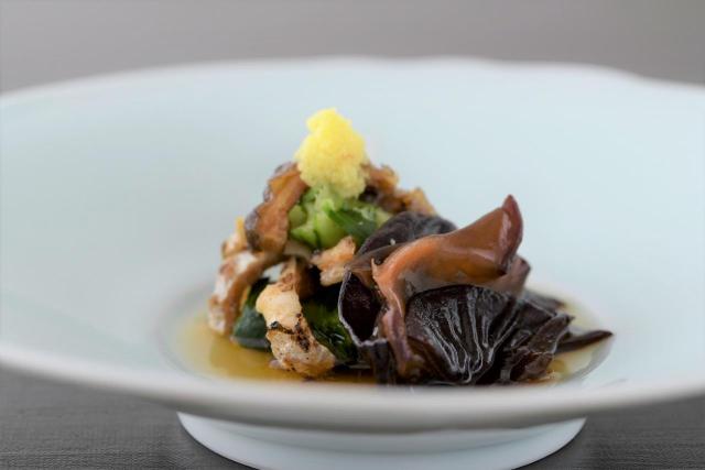 月替わりの季節のコース、動物性食材不使用の精進コースなどを提供している日本料理レストラン「GINZA豉KUKI」(ぎんざくき)にて、8月のコースが提供中。