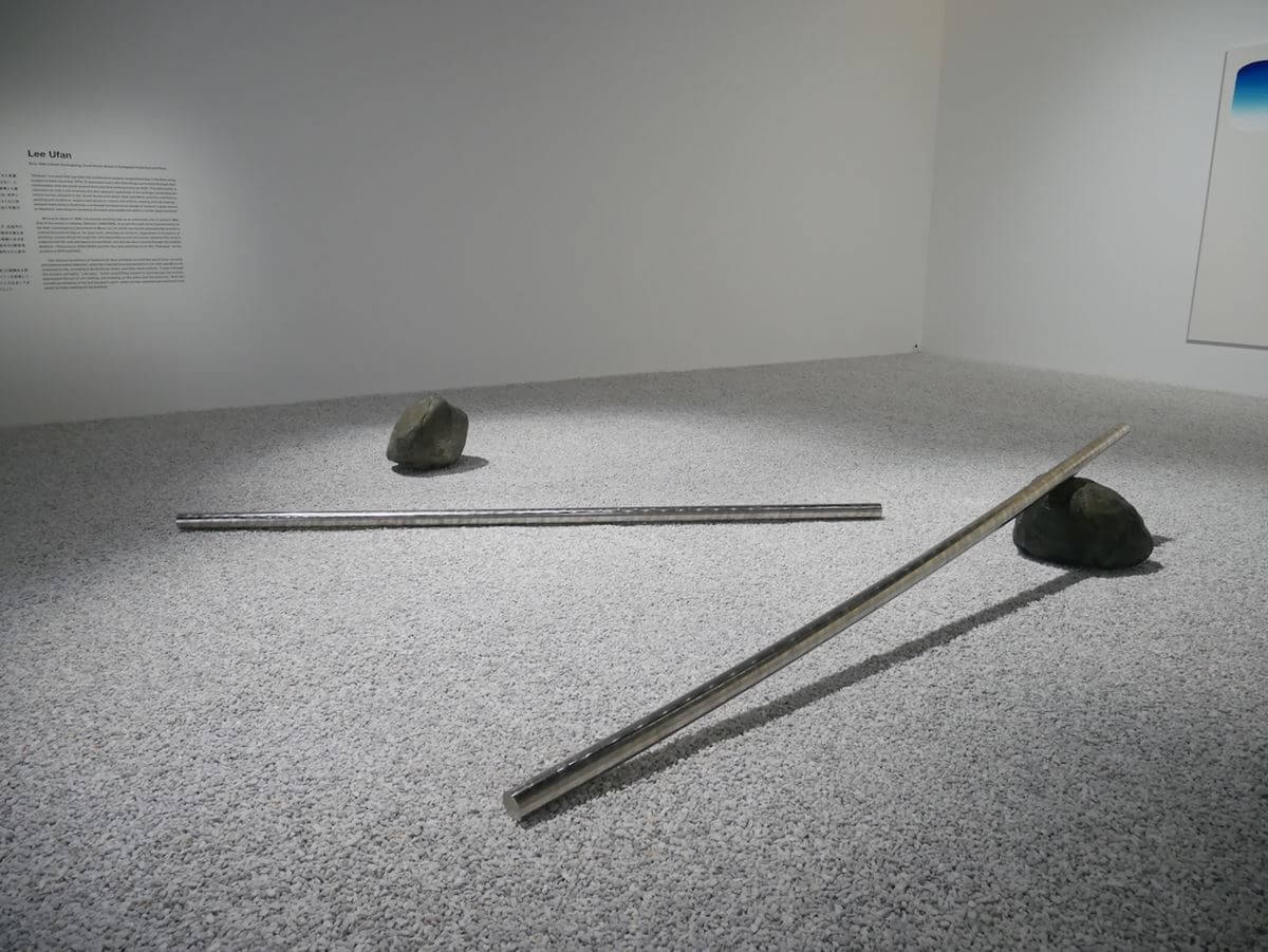 続く展示室では、韓国出身の李禹煥(リ・ウファン)を紹介。1956年に来日し、60年代後半より本格的な作家・評論活動を開始した李は、ものや素材そのものを提示する「もの派」の流れをくみ、もの相互の関係性に意識を向けた制作を行ってきた。