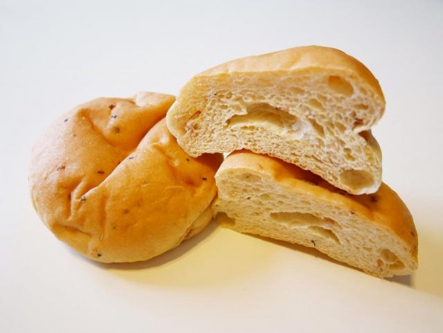 前述の「糖質85%カットのテーブルパン」と同じパン生地に、ベーコンビッツと粗挽き黒胡椒が練りこまれています。