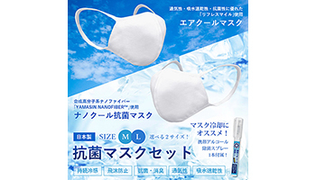 新型コロナウイルス感染者が急増傾向の中、感染予防と猛暑の暑さ対策が同時に求められている。そこで今回、医療用レベルナノフィルターを採用した「ナノクール抗菌マスク」と、猛暑の屋外で使用することを目的に開発した高通気性マスク「エアクールマスク for Work Man」を特別価格でセット販売する。さらに、セット特典として、マスクに振りかけて使用する携帯アルコール除菌スプレーCOOL+を1個無料で提供する。