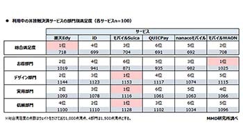 非接触決済サービスの総合満足度では「楽天Edy」が1位に