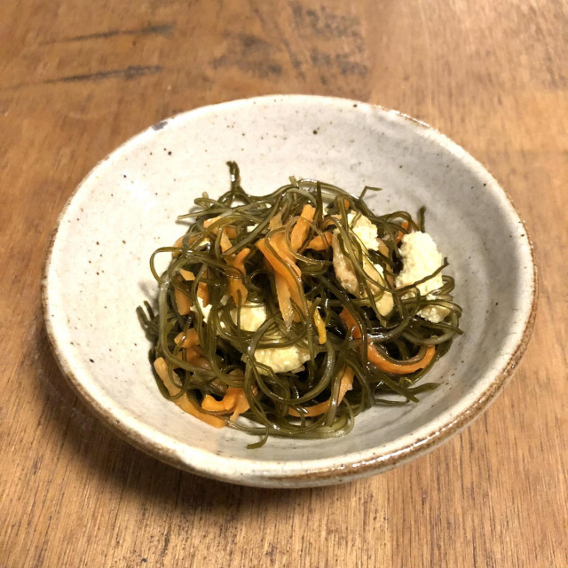 そんな京揚げの他に「京揚げ入り茶切り昆布煮」390円(税込)には昆布とにんじんが入っています。豆腐が残っている油揚げである京揚げは京揚げでない油揚げよりも厚みがあるため、ジューシーさを感じられます。メインとまではいきませんが、満足感のある食感と味付けはご飯のお供にぴったりです。