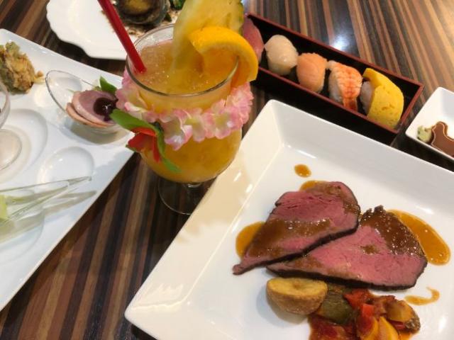 宿泊で夕食込みの場合、ディナーはホテルハワイアンズでは「グランダイニング ザ パシフィック」、モノリスタワーでは「フレンチポリネシアンブッフェ ネシア」にて食べることができます。