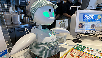 一連の流れは、通常の流れと変わらずスムーズだ。案内にあわせてコミカルに動きながら注文を取るオリヒメは可愛らしく、大崎店のスタッフと似た制服を着ている姿にも親しみがわく。無人レジとは比べるべくもなく、温かい接客に感じた。