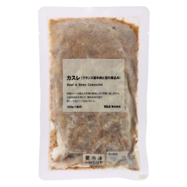 肉は豚肉やソーセージ、ものによっては羊肉、ガチョウ肉、アヒル肉などが使われることもあるといいます。無印良品の「カスレ(フランス風牛肉と豆の煮込み)」390円(税込)には牛肉が使われています。