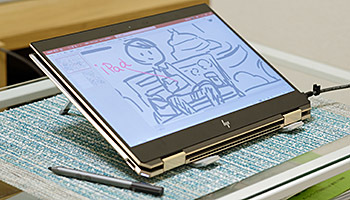 また、タブレット型のPCで文字やイラストを描いている人にもノートPCスタンドはおすすめ。手書きがもっと快適になること請け合いだ。(浦辺制作所・澤田 竹洋)