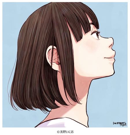 Tシャツのデザインについて、浅野いにおは、「明るい未来を見据えて前を向く女性を描きました。この状況が早く良い方向へ変化することを願っています」とコメント。