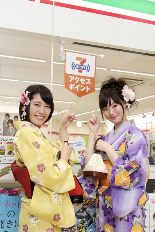 花火を見るには、飲み物や軽食も必須! 「セブンスポット」のおかげで無事集合もできたから、ついでに買い出しをしていくことに。せっかくの浴衣が汚れても困るし、花火大会の時には手が汚れにくい食べ物が最適です。オススメは、フランクフルトや、カップ付きのソフトクリーム。iPhone女子部員のお気に入りは「ワッフルコーン ミルクバニラ」。ミルクの濃厚な風味が最高!