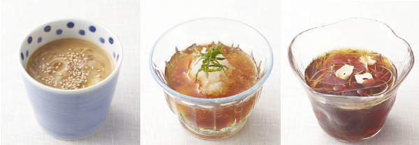 どれもめんつゆ(ストレートタイプ)にプラスして作るだけなので、簡単です。いろんな味わいを楽しみましょう。