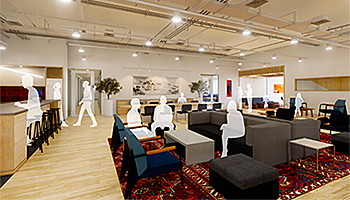 また、オープンなラウンジスペースやワークスペースなどによって、従来のオフィスよりも活気があふれ、コミュニケーションが促進されるオフィスを目指す。