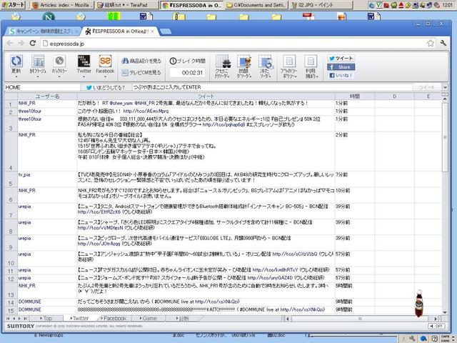うおおおおお! エクセルのグリッドにつぶやきが表示されてる! これは素直にすげえ!