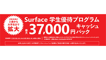 いま、学びの環境が急変しつつある。かねてからPC業界が提唱していた「1人1台の個人PC」が定着する可能性が出てきた。日本マイクロソフトは7月15日から、「Surface 学生優待プログラム」の対象を大幅に拡大。購入日時点で満3歳以上の子どもから対象となった。つまり年少・年中・年長の保育園/幼稚園児のいる家庭は、申請者欄に子どもの名前を記載して申し込むとキャッシュバックを受けられる。
