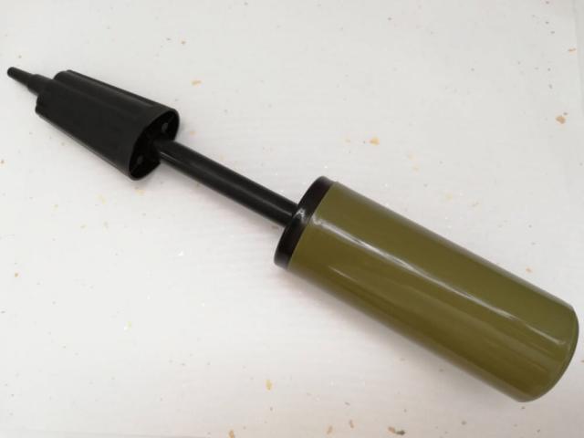 袋から出すとこんな感じ。一見、空気入れに見えますが、それもそのはず。空気入れとしても使えるんです。バーベキューの会場が河原や海辺なら、そのまま浮き輪の空気入れとして活躍させることもできそうですね。