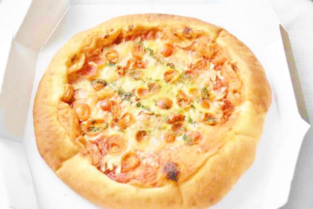 一日数回にわけ、焼きたての「ピザ」が販売されるとオープン前から話題になっていたので、さっそく買って、飲み会などで持ち寄って食べてみた。