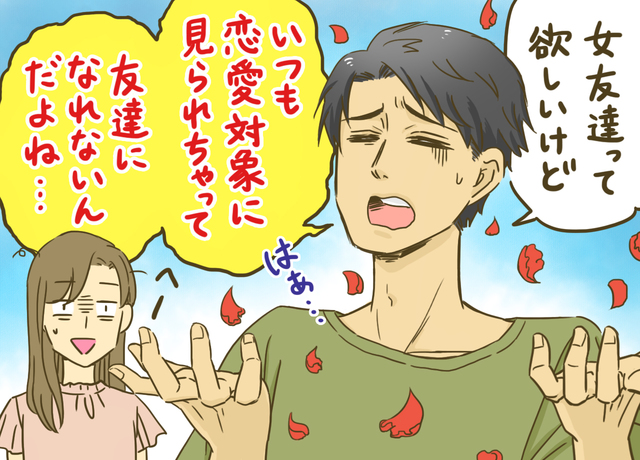 異性の友達がいるか、という話になった時に『女友達って欲しいけど、いつも恋愛対象に見られちゃって、友達になれないんだよね〜』と言われてドン引き。
