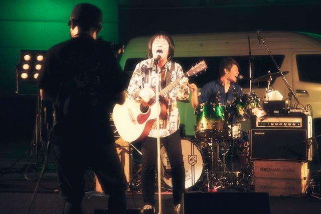 開演時間の19:00、待機中の映像(過去の写真のスライドショー)が切り替わり映し出されたのは、クルマの助手席からのアングル。グレートマエカワ(ベース&リーダー)が運転するハイエースが横浜アリーナに到着し、そのままホールの中に乗り入れて行く。