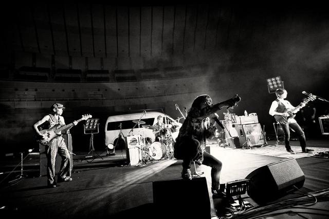ステージ部分は渋谷クラブクアトロとリキッドルームの間くらいのサイズ、4人の背後にはハイエース、カメラはどんどん切り替わるが、画面に映っているのはほぼそのスペースだけ。