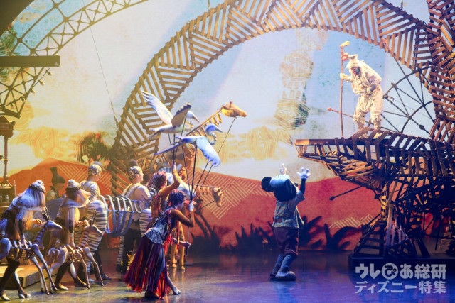 映画「ライオン・キング」の名曲「サークル・オブ・ライフ」に合わせて、舞台の上には様々な動物たちが現れます。