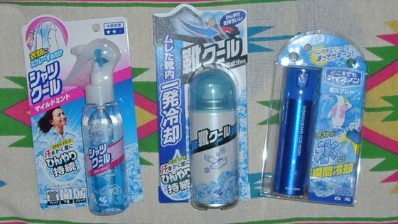 そういった消費の拡大を受けて、各社様々な製品を出しています。今回は通勤前などに服にスプレーすると涼しい「シャツクール」、同じく小林製薬のドストレートな「靴クール」、そして有名な「アイスノン」のバリエーション「ぬるアイスノン」などを展開している白元がつくった「どこでもアイスノン」です。
