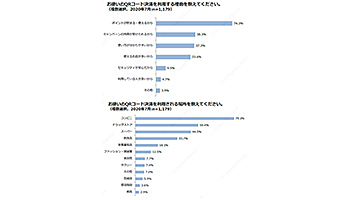20年7月調査では、QRコード決済を利用する理由として、「ポイントが貯まる・使えるから」(74.3%)が最も多く、「キャンペーンの特典が受けられるから」(38.3%)、「使い方が分かりやすいから」(37.3%)、「使えるお店が多いから」(33.6%)がそれに続く。