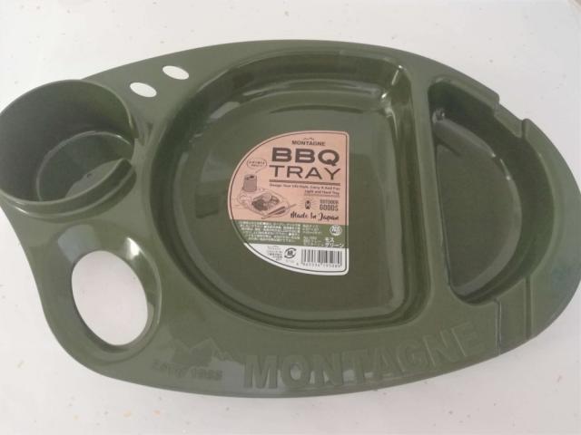 使い捨ての紙皿もいいですが、こちらの「BBQトレー」は指を入れるところと、ドリンクを入れるところがついているところが秀逸! 一人ひとつ持っておくととても便利です。