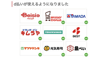 利用にあたって、d払いアプリの最新版へのアップデートが必要。また、d払い加盟店には、8月21日からヤマダ電機グループ、9月1日から北関東を中心に出店するスーパーのベイシア(一部店舗除く)、ダスキンのドーナツ・飲茶の専門店「ミスタードーナツ」が加わった。さらに9月10日からは順次、イトーヨーカ堂の「イトーヨーカドー」、ヨークの食品スーパー「ヨークマート」「ヨークフーズ」「ヨークプライス」「コンフォートマーケット」で利用が可能になる予定。