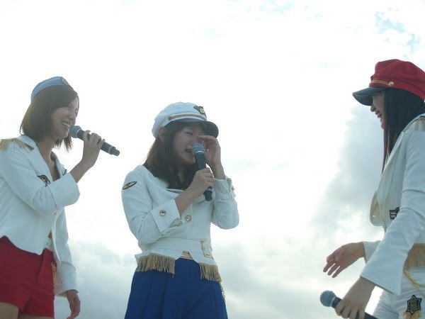 そこにいたのは…アイドリング!!!。SKY STAGEも時間が押しまくっていたんで、ここで「1stアイドリング!!!」の3人を見ることが出来ました!このステージ、ともかく綺麗!広がる空と、向こうに見えるフジテレビや観覧車、そして目の前には美しいアイドリング!!!一期生…。個人的にはソシちゃんのGENIEっぽい衣装もツボでした。最後の『3度目の記念日』では外岡さん泣き出しちゃうからこっちまでググッと…。いやはや、まさしく夕焼けのマジックアワー到来であります!