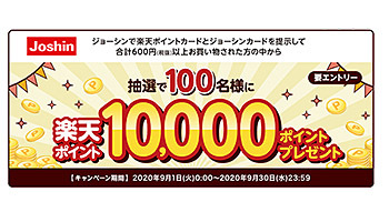 上新電機は、単品で200円(税別)以上、かつ合計で600円(同)以上購入した人の中から抽選で100人に楽天ポイントが1万ポイント当たるキャンペーンを9月30日まで実施している。