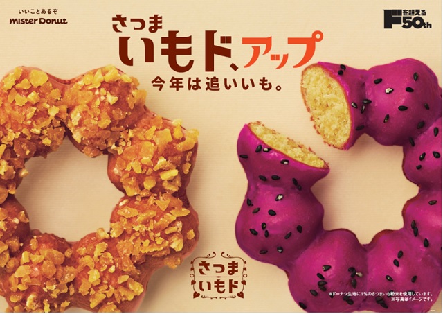 ミスタードーナツの「さつまいもド」が、昨年から味・種類ともに一新。9月4日(金)から全国で数量・期間限定で発売中です。