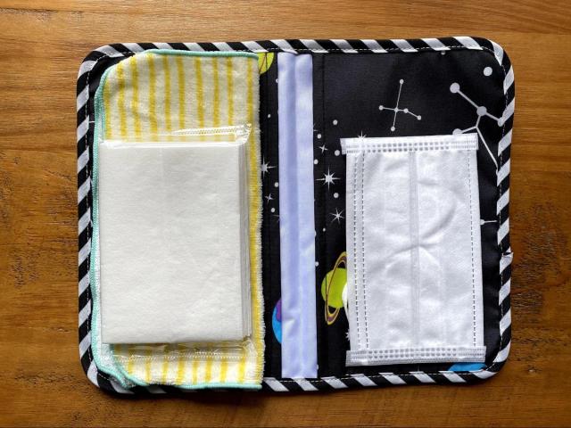 ポケットが両側についているので片側に未使用のマスクをいれておいてもいいですし、ハンカチ、ティッシュを入れておくこともできます。