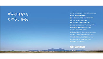 タグラインを考案したのは、GINZA SIXの命名などを手掛けたサン・アドのコピーライター岩崎亜矢氏。同氏は、「ツインバードは、ユニークな家電メーカーである、という気づきが出発地点。決して大きくはない集団なので柔軟に動けるが、『なんでも揃える』のは難しい。ただ、新潟県燕三条の職人気質を持ったベテランと若手の距離が近く、成長が促されているように感じたので、将来はもっとユニークになると考え、タグラインを発案した」と説明する。