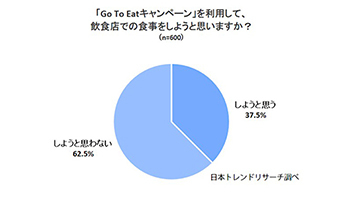 Go To Eatキャンペーンを利用して、飲食店での食事をしようと思うかを尋ねた質問では、「しようと思う」という回答が37.5%に達している。