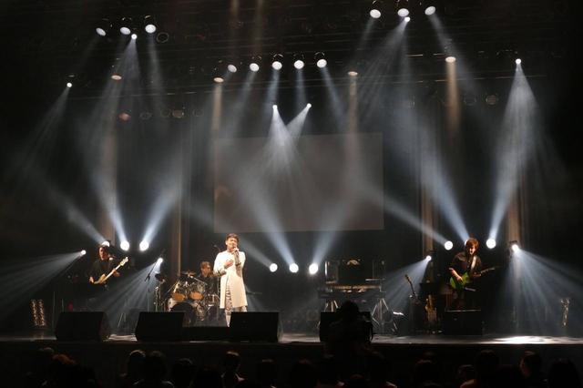 19時30分。開演と同時に配信もスタート。抒情的なメロディーが流れる中、安岡 優がステージに姿を現す。オープニングを飾ったのはロックバラード「Your Hero」だった。安岡が作詩(山田ひろしとの共作)・作曲を手掛けた、ゴスペラーズのナンバーである。曲中の<誰より側で守りたい><世界も救えないし、空も飛べないけれど、>というフレーズが、誰もが抱える“先の見えない不安”という日常の闇に、小さな光を灯した気がした。