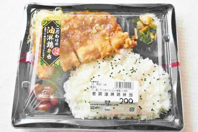299円のお弁当シリーズは鶏料理が多いようですね(笑)。同じようですが、「若鶏油淋鶏弁当」とは味が少し違います。