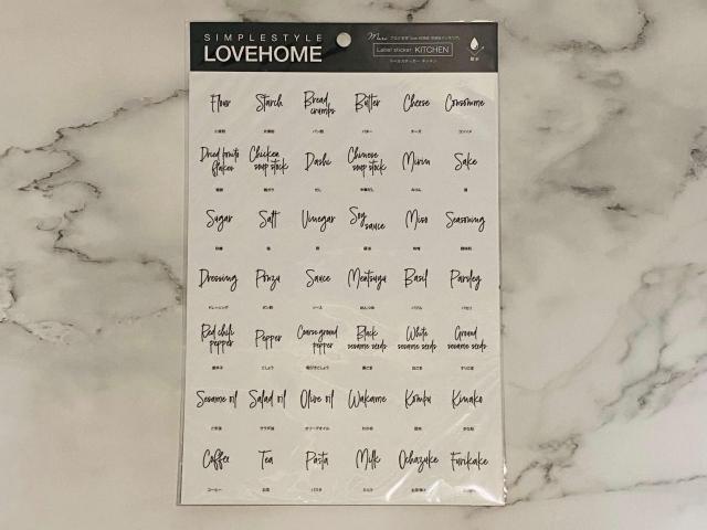 クリア×ブラックとブラック×ホワイトの2色展開。キッチン関連の42種類のラベルが1シートに入っています。日本語表記のラベルもついているため、英語が少し苦手なママにはW使いがオススメ。