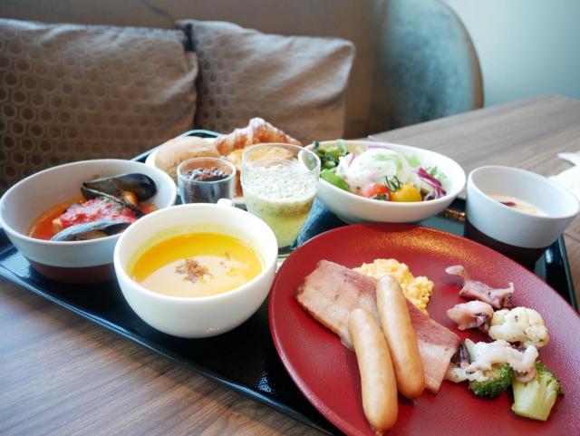 朝は和洋から選べる朝食を。豊洲市場から仕入れた季節野菜を使った、サラダやスムージー。魚介は、渡り蟹としじみの味噌汁やお刺身の醤油漬けなど、豊洲グルメを朝から存分に堪能できます。