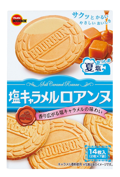 ビスケット系の塩味お菓子はブルボンからもいろいろ出ています。濃厚なバターに絶妙な具合で塩が効いた「ソルトバタークッキー」、何しろさわやかな「夏ブッセ ソルティーレモン味」、甘いのにしょっぱいサクサク感がうれしい「塩キャラメルロアンヌ」。これまた、どれも冷やして食べてほしい感じです。