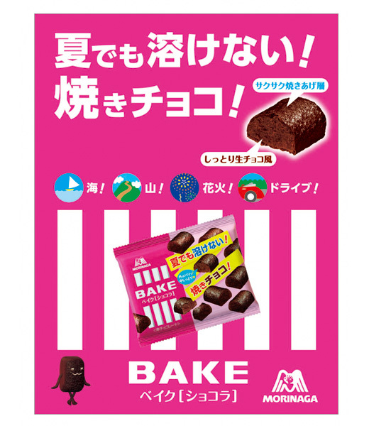 まず、森永「ベイク<ショコラ>」は、手で持っても溶けないひと口サイズのチョコレート。しっとりしたチョコレートを香ばしい焼きチョコが包んだタイプで、外側のチョコレートがかなりしっかり焼かれているので、手で持っても溶けず、べたつきません。