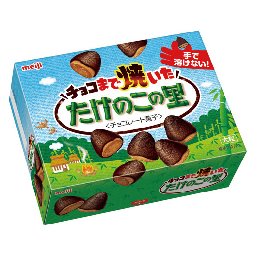 定番の人気ロングセラー「たけのこの里」(明治)にも焼きたけのこバージョン「チョコまで焼いたたけのこの里」が登場! クッキー部分だけでなく、チョコレート部分も焼いているので、これまた、手で持っても溶けません。しかも! 通常のたけのこの里よりひと回り大きいんです。「たけのこの里」派はもちろん、「きのこの山」派のあなたも一度食べてみてください。宗旨替えしたくなっちゃうかもしれません。