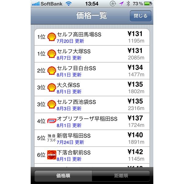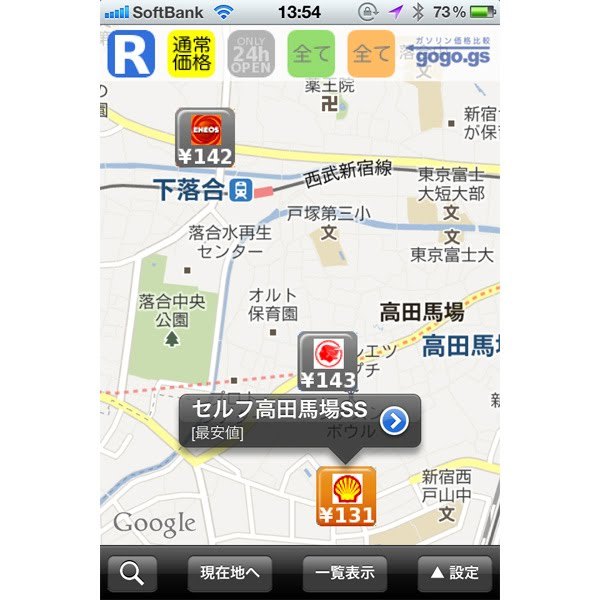 いっぱい車を走らせたから、そろそろガソリンガ切れてくるころ……。近くのガソリンスタンドはどこだろう? その前にこのアプリをチェックしておこう! 現在地付近のガソリンスタンドと価格をマップに表示してくれるお役立ちアプリなのだ。一覧で価格比較を見ることもできるので、節約家にはうれしい限り。検索結果のアイコンをタップすると、店舗の住所やサービス内容、目的地までのルートも検索もできるという充実ぶりも◎。