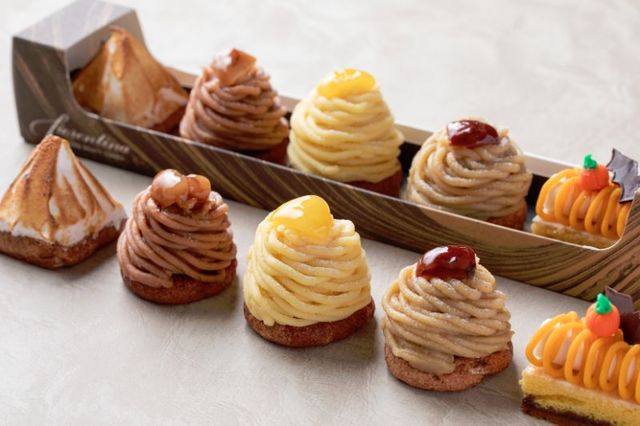 モンブラン5種類(フレスコ/ジャポネーゼ/フランシア/イタリアーノ/パンプキン)を一口サイズにして、モンブランの食べ比べができる、嬉しい詰め合わせです。