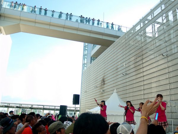 この暑さの中で20分歌って踊れて、ステージ上で大崩れすることはないんです。しかも楽曲も素晴らしいし、栃木のアイドルとしてだけ存在するのはもったいないような、でも同時に、栃木のアイドルだからこそ持っているレアリティみたいなものも失って欲しくないし…。聞けば、初日のSKY STAGEで体調を崩したメンバーがいたり、このステージの前後もかなり大変だったそうです。うう、あんまりがんばりすぎないで、息の長い活動を続けて欲しいです…。ご当地ブームで消費されちゃもったいない! 栃木名物として、確固たる地位を築いてください! がんばれとちおとめ! はっ…熱く書きすぎた…。