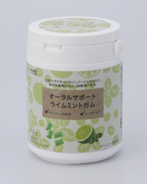カインズの「オーラルサポート ライムミントガム」には、広島大学末病予防医科学共創研究所で生まれた、植物乳酸菌BM53-1発酵果汁が配合されており、虫歯と歯周病の原因になるバイオフィルムを軟弱化してくれます。