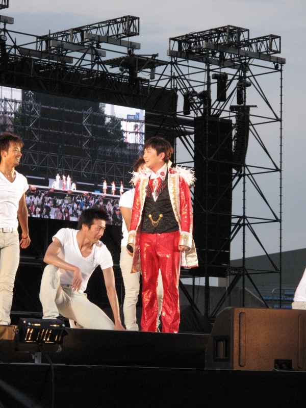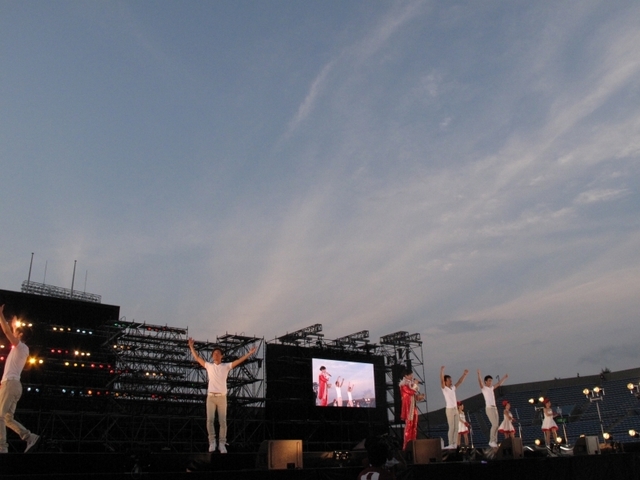 彼の世界観は例えばミラーボールがきらめくダンスホールなんかが似合いそうな濃厚さなのですが、それが夕暮れに差し掛かる大空の下で繰り広げられるというギャップも、見ているうちにジワジワと快感に変わっていくから不思議です。MCも比較的少なめ、ショーアップされながらもどこかストイックなプロ意識に溢れたステージ。ラストの『シャバン シャバン』を歌い終え、安堵したような笑顔を見せていたのが印象的でした。