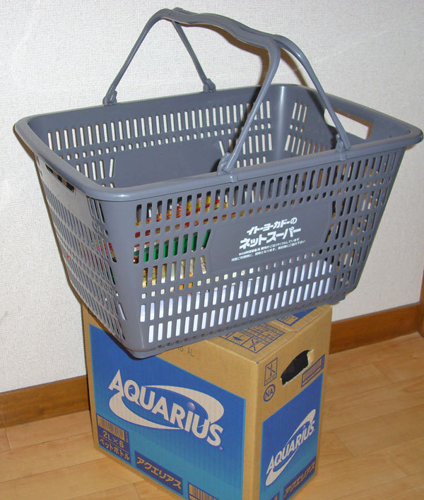 注文内容が決まったら、カードとか代引とか決済方法を決めて、届く時間帯を選んで完了です。僕は朝の8時半に注文して、14~16時に届くように指定。そしたら14時半に届きました。優秀!僕はレジ袋を使わない「エコdeバスケット」っていうのを選んだんですが、これは、レジ袋の代わりに、スーパーで買物する時に使うあのカゴに入れて届けてくれるんです。で、そのカゴごと渡してくれて、次回注文配達時に、カラのカゴと交換するっていうシステムです。次に注文してカゴを返すまでは自由に使ってていいだろうから、お菓子でもいっぱい入れておこうと思ってます。