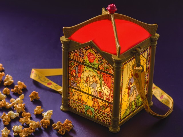 映画「美女と野獣」の世界をイメージしたポップコーンバケットは、点灯させるとステンドグラスのモザイク画が光ります。